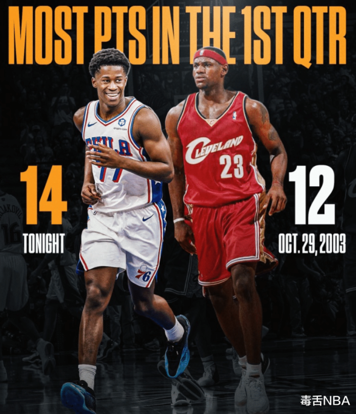 No one could have expected that Edgecombe's NBA debut would be so "unreasonable." Before the start of the game, the focus of outside discussion was "Can the 76ers without George withstand the Celtics' offensive" and "Whether Embiid's health will affect his performance." However, after the first quarter, all topics were replaced by one name-Edgecomb. He scored 14 points on 5-of-9 shooting. This number directly broke LeBron James's 22-year-old record of "highest points in a single quarter for an NBA rookie in his debut" (12 points). You must know that James' debut that year was already regarded as a declaration of "The Chosen One", and Edgecombe surpassed it in just one quarter, becoming the first person in history to hold this record.