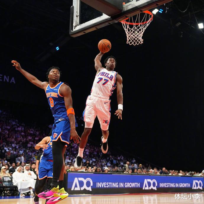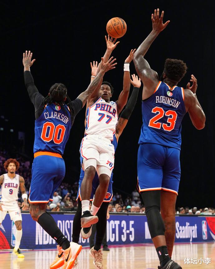 Embid and George still did not play in this game. They came to Abu Dhabi and were completely traveling. They didn't play for a minute, and they were all sitting off the court to watch the game. Without two core players, the 76ers were also passive on the court. They were suppressed by the Knicks from the beginning. They were in a passive situation since then and were completely unable to keep up with the rhythm. They were at most 18 points behind. Fortunately, when they were replaced with a substitute player in the end, the 76ers successfully approached the gap, leaving only 5 points at one point, but they still failed to achieve a reversal.