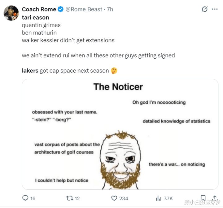 Lakers media Coach Rome wrote that Marcelin, Kessler, Ethan, Grimes and others failed to reach an early contract extension with the team this summer. The Rockets gave contracts to many people but not Ethan. The Lakers have enough salary space next summer. (James' contract of more than 50 million yuan expires)