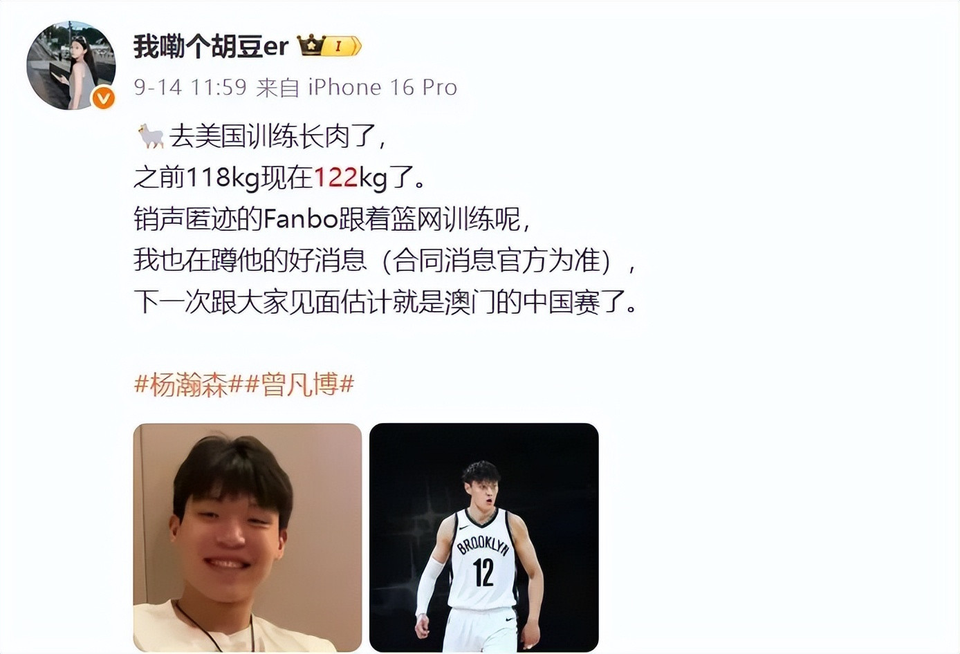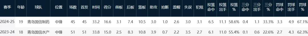 It is worth mentioning that according to previous domestic media reports, Yang Hansen's weight has increased from 118 kg to 122 kg. The success of muscle building will help him improve his physical confrontation and have an advantage in inside frame protection and rebounding.