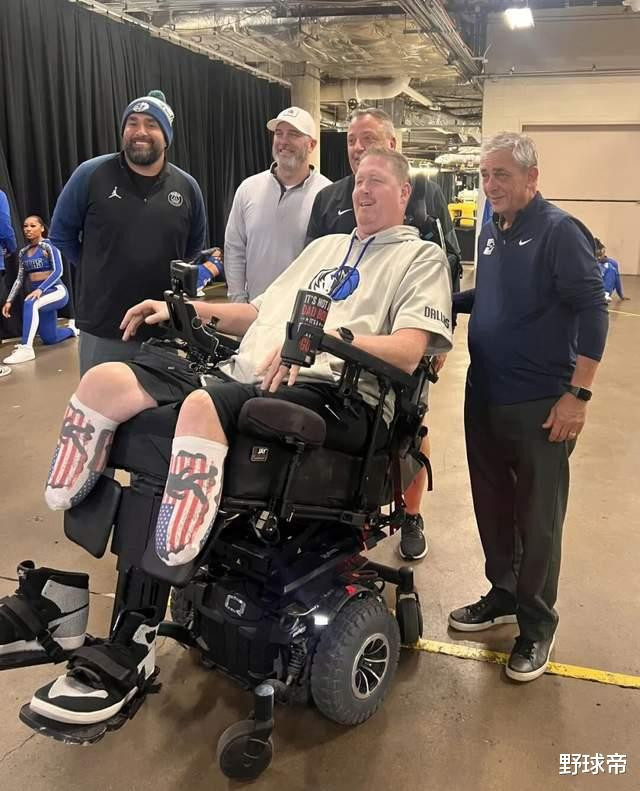 As a veteran of the team, he came to watch the Mavericks game today, but he came in a wheelchair...