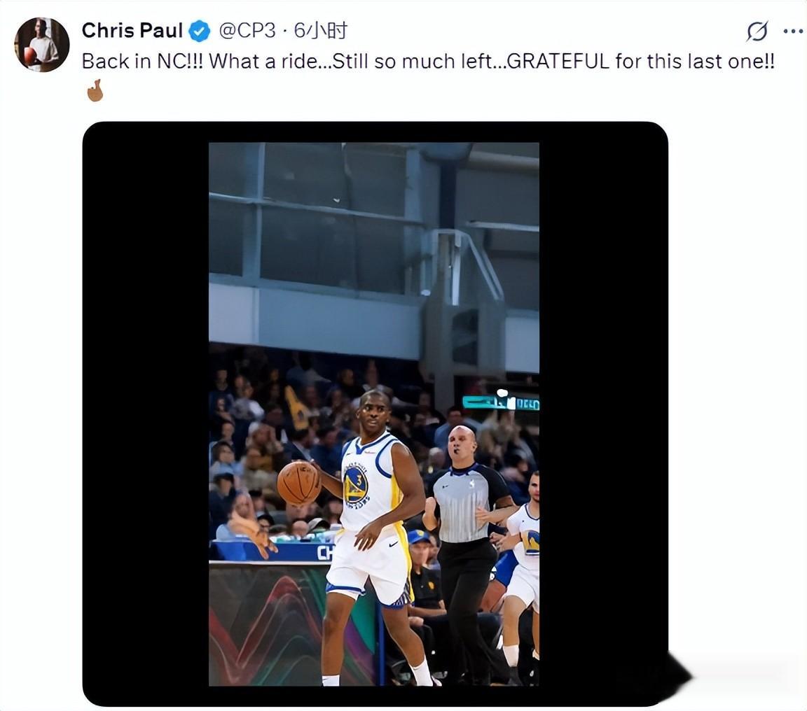 Before the Clippers played against the Hornets, Paul, who returned to his hometown, officially announced on social media that he would retire after this season. He posted a video reviewing his career and wrote in the accompanying text: Back in North Carolina... What a wonderful journey... There is still a lot of reluctance... I am very grateful for this last journey.