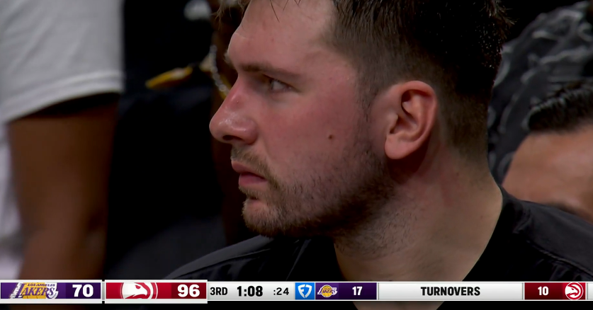 AA-Sport > Basketball > The Lakers 5-game winning streak was ended! Doncic was abandoned early with 22+11: Frustrated, he sat on the bench scratching his head.