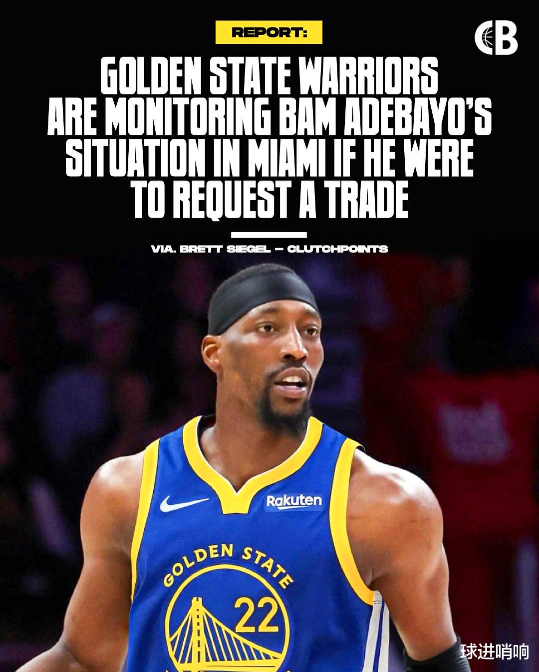 According to the report of the famous reporter of the US media "Clutch Points", the Warriors are closely monitoring the Heat's inside core Adebayo.