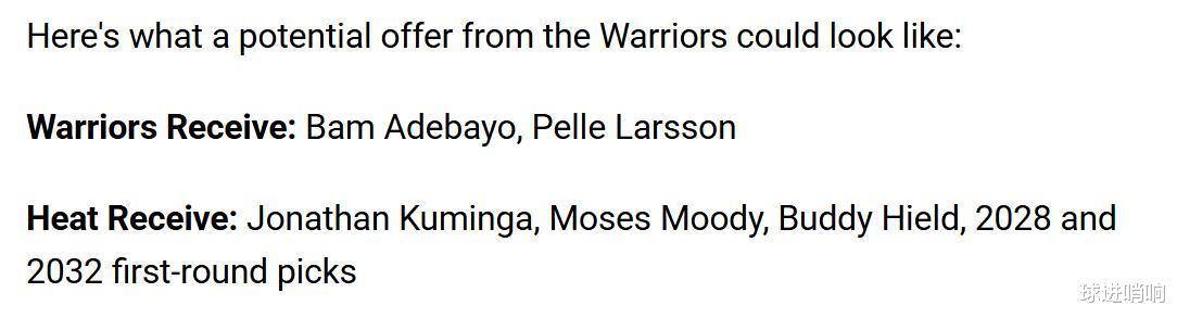 If the Heat are willing to accept such a plan, the Warriors have no reason to refuse, which is perfectly in line with the Warriors' various reinforcement needs.