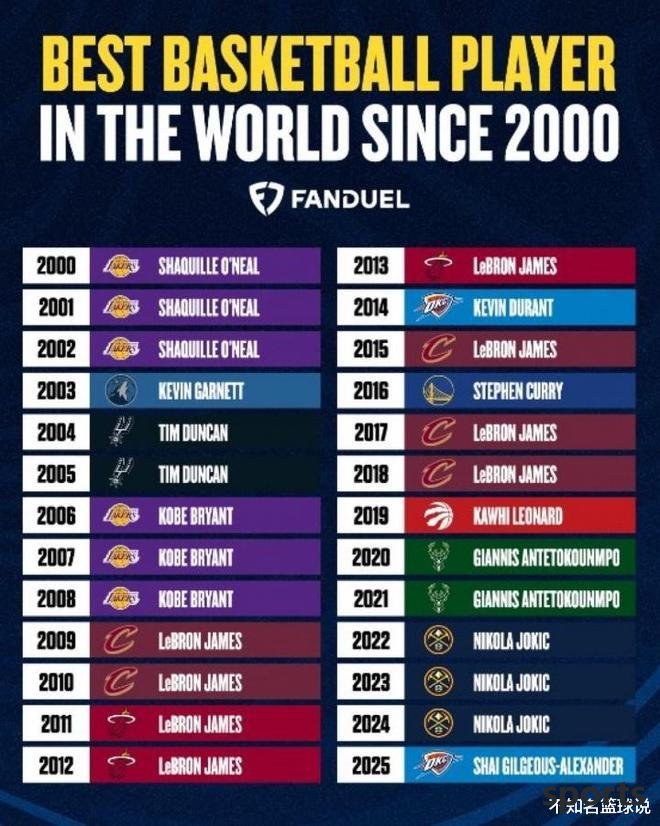 - US media commented on the strongest player every year in the 21st century: James dominated in 8 years, O Pang Kobe Jokic dominated in three consecutive games
