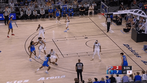 For example, in the following round, the close-out step was very stable, the sense of position when changing defense in the corner was just right, and he paid attention to reaching out to intercept, and the final rebound was also very stable: