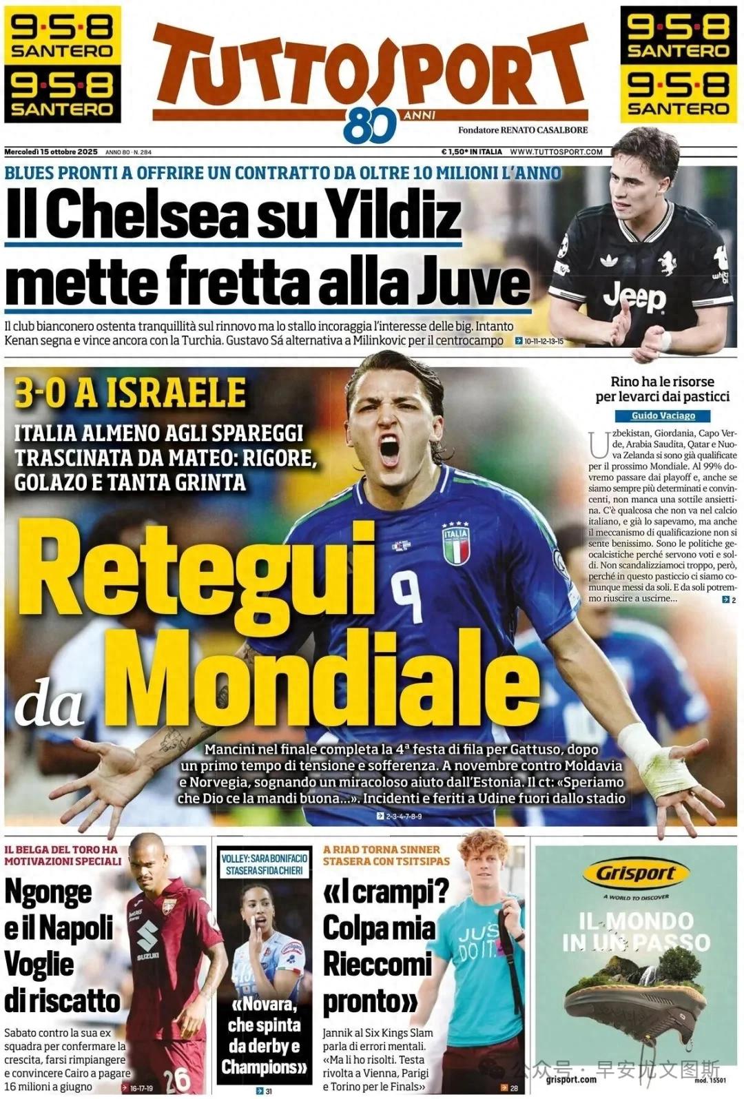 2. Retegui deserves to be in the World Cup. 3-0 Israel, driven by Mateo, moved Italy towards the play-offs, at least: penalties, a world wave and a lot of courage. After struggling in the first half, Mancini made it four in the final minutes. Against Moldova and Norway in November, dreaming of miraculous help from Estonia. Head coach: "Hopefully God will be kind to us." Clashes broke out outside the stadium in Udine and people were injured.
