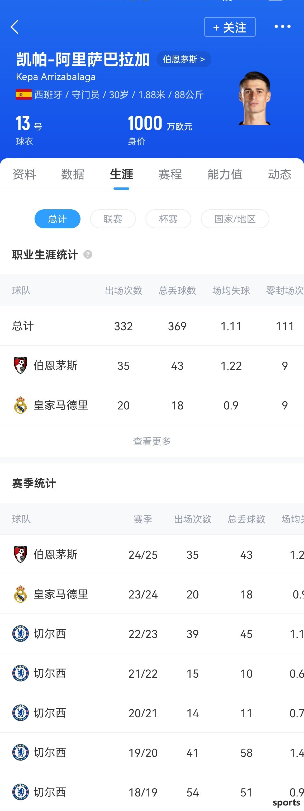 Kepa, 30, transferred to Chelsea in 2018 at a record high price of £71.6 million, playing 163 times for Chelsea. Since then, he has been loaned to Real Madrid and Bournemouth respectively. He played 35 times for Bournemouth last season and contributed 9 clean sheets.