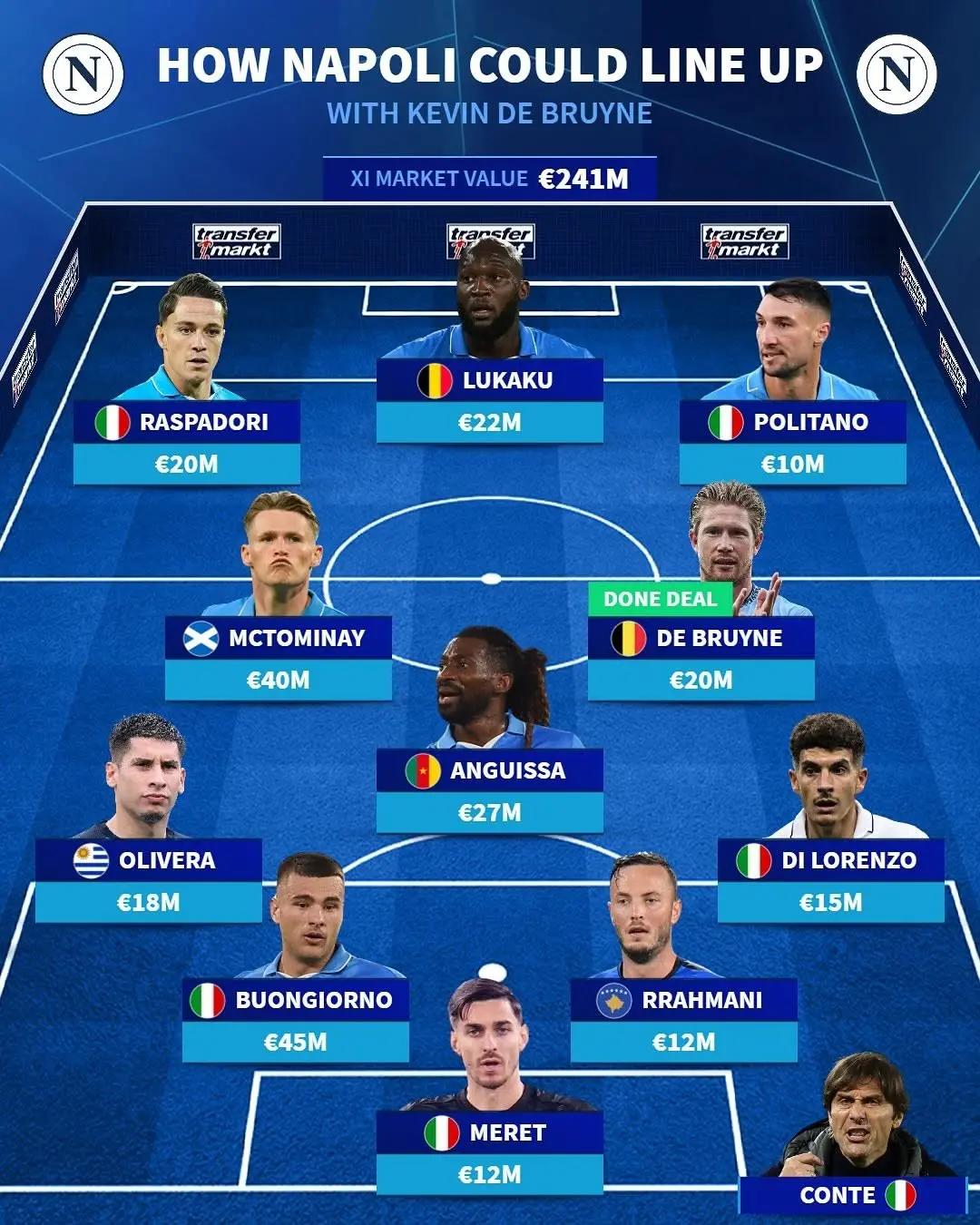 31 million euros were introduced to Buickma, Noah Long won 25 million euros, Gutierrez signed 18 million euros, Milinkovic bought 15 million euros, Lorenzo Luca loaned 9 million euros, Marianaucci was signed 9 million euros, and De Bruyne was signed without a sign... Napoli completed a series of dazzling operations, and the players they bought seemed to be "not very famous", but considering that Buickma, Luca and De Bruyne were all players who met Conte's tactical requirements, this 100 million yuan reinforcement may help Napoli complete the Serie A defense plan.
