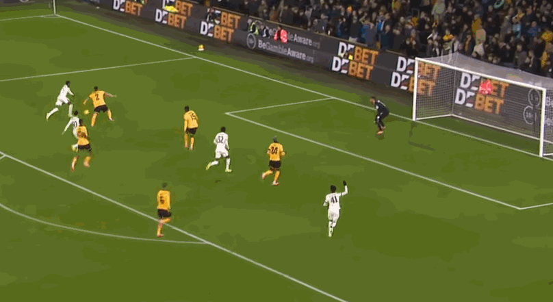 In the 48th minute, Huang Xican completed the interception and sent a through ball to Arokodare. Arokodare succeeded with a single push shot into the far corner. The Wolves came back 1-3.