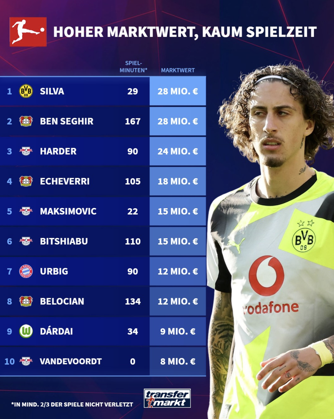 List of players with low attendance in Bundesliga this season: Dortmund s Silva and pharmaceutical company Ben Segier top the list