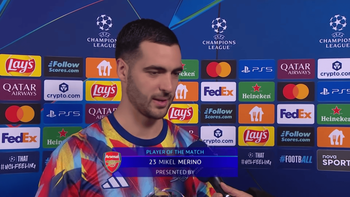 Hupu News November 05, UEFA Champions League, Arsenal defeated Slavia Prague 3-0. After the game, Arsenal player Mikel Merino was interviewed by CBS Sports.