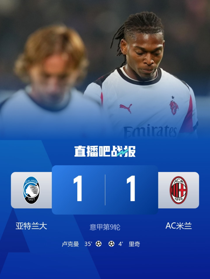 Two draws in a row! Milan 1-1 Atlanta is 3 points away from the top spot. Ricci scored from a long shot. Leo retired injured at halftime