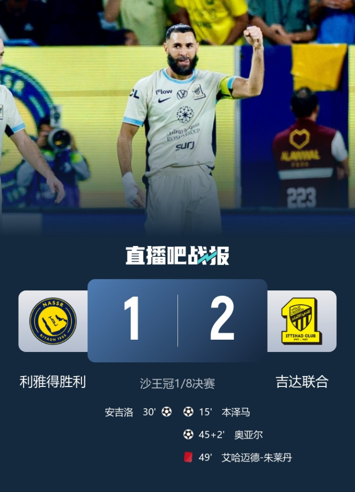 Benzema pushed and scored, Oyar volleyed and scored. In the end, Riyadh won 1-2 and ten-man Jeddah combined and missed the quarterfinals.