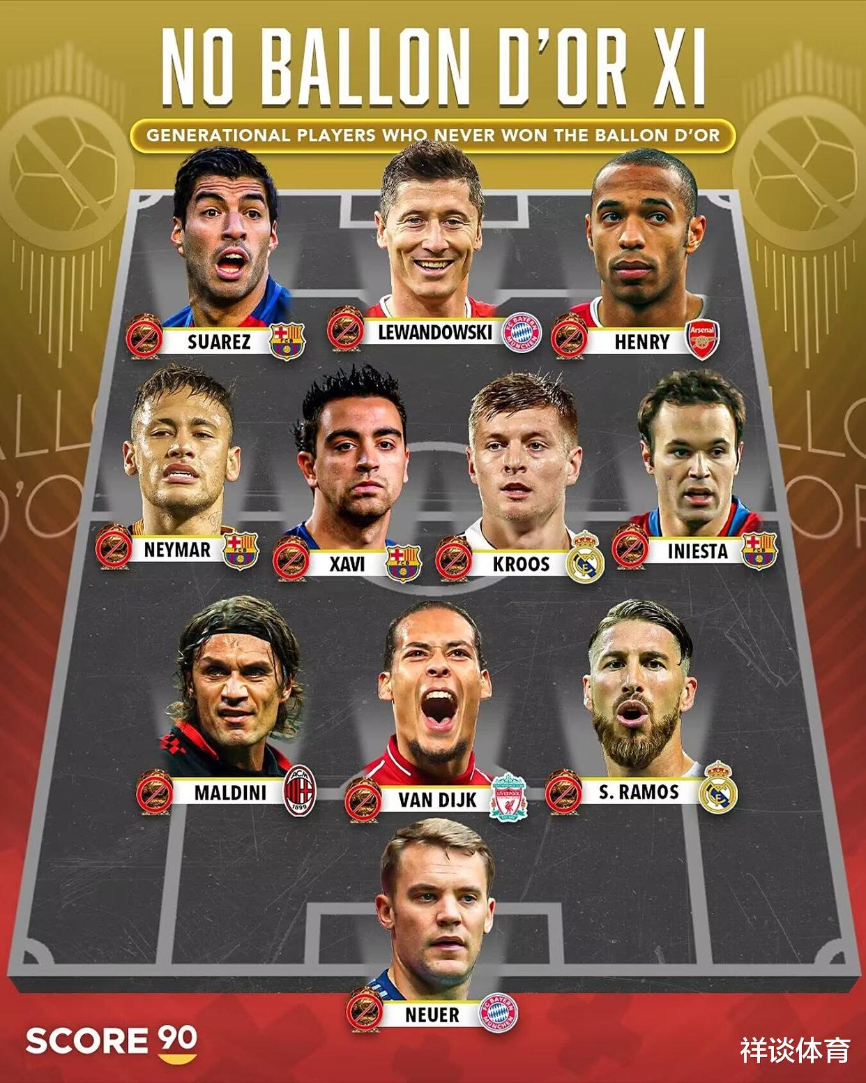 As we all know, the Golden Globe Award has always been the most valuable individual award in football. The players who can win the award are basically the top players in a certain year or a period. At the same time, there are many players who have the conditions to win but unfortunately failed to win the award. Just now, the data website S90 counted a best team that did not win the Golden Globe Award.