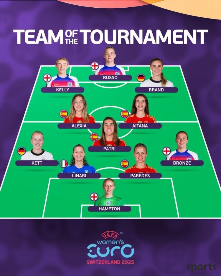 The official best team of the women s European Cup: Kelly & Bonmati led, England and Spain 4 players each