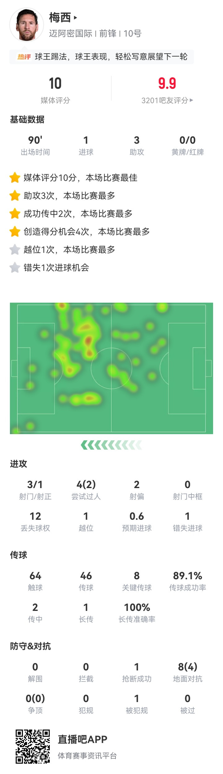 Messi's statistics for this game↓